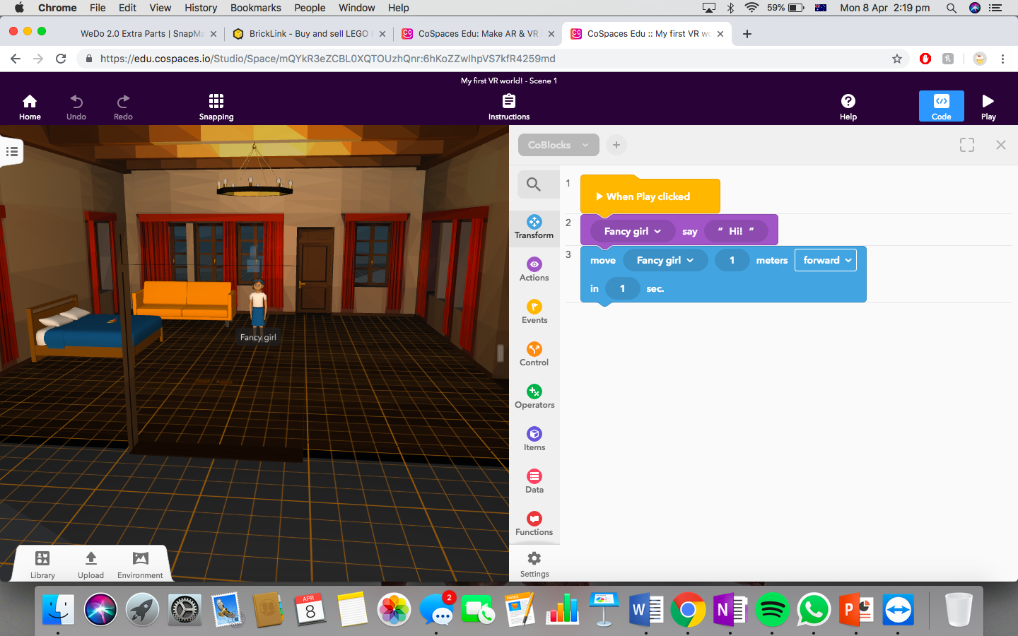 VR is unique, fun and engaging and it always leaves me wondering about how it all works. In terms of education, you’ve clearly shown how CoSpaces can be used to create 3D environments that potentially support the facilitation context-based learning experiences. For example, students could use CoSpaces to design a space environment to represent concepts about planets or even create a rainforest to showcase characteristics of ecosystems. I feel that with VR learning is not limited to creating as it also enables learners to immerse themselves in their own and other people’s creations using the headsets.